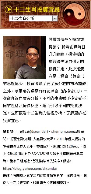 2011年準確預測世界天災年、物價狂升、期油升穿120美元、恆生指數10月由全年低位V型反彈及領土主權問題升溫等。