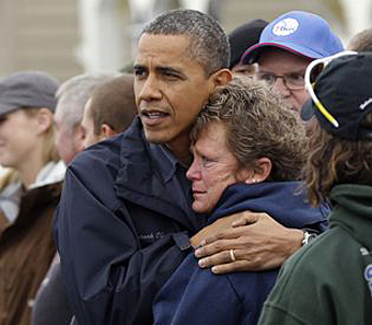 美國總統奧巴馬周三親赴受風災重創的新澤西州視察災情,承諾協助災區重建。奧巴馬盡展關懷之際,共和黨的羅姆尼卻被指其早前的「捐贈物資」活動,疑屬自編自演的公關騷。
